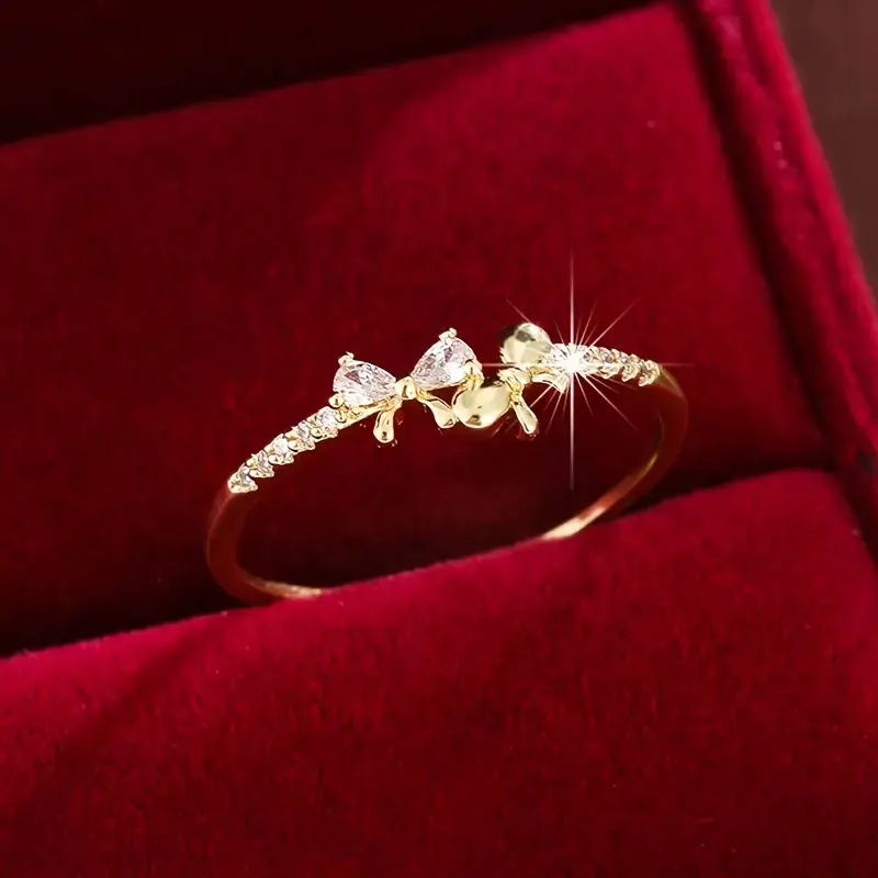 Stylischer Schmetterlingsring mit funkelnden Zirkonia – verstellbares, offenes D